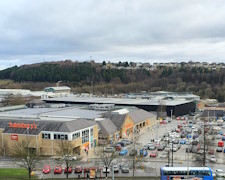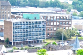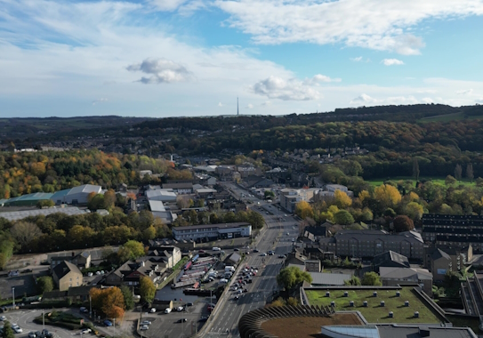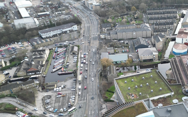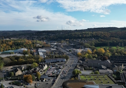 VIEW TO SHOREHEAD ROUNDABOUT KINGSGATE SHOPPING CENTRE AHEAD UNIVERSITY OF HUDDERSFIELD ON LEFT |