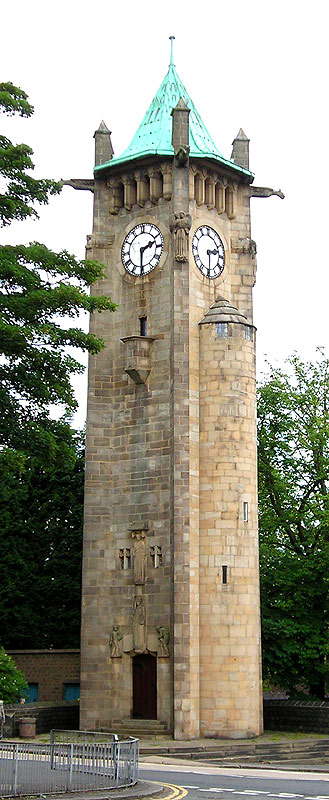 Lindley Clock Tower Lindley Clock Tower is the most prominent landmark in Lindley, standing at the junction between Lidget Street and Daisy Lea Lane. This Art Nouveau clock tower was designed by the Manchester architect Edgar Wood in 1900 and erected by James Nield Sykes in 1902. The tower also features four buttress figures, four gargoyles and four friezes. ![]() |