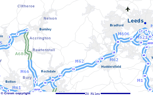 current conditions on the M62 and M1 in our region and Trans